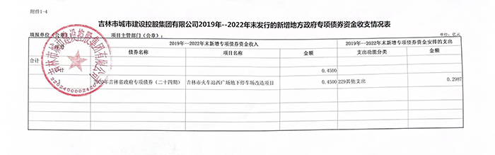 吉林市城市建設(shè)控股集團有限公司2019年-2022年末發(fā)行的新增地方政府專項債券情況表