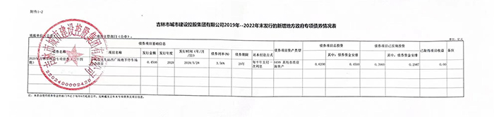 吉林市城市建設(shè)控股集團有限公司2019年-2022年末發(fā)行的新增地方政府專項債券情況表