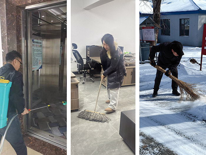 12個(gè)部室和在集團(tuán)公司大樓內(nèi)辦公的子公司派出40名員工,徹底清除了樓前樓后鞭炮紙屑、殘冰積雪、越冬垃圾及殘留雪堆、黑雪。